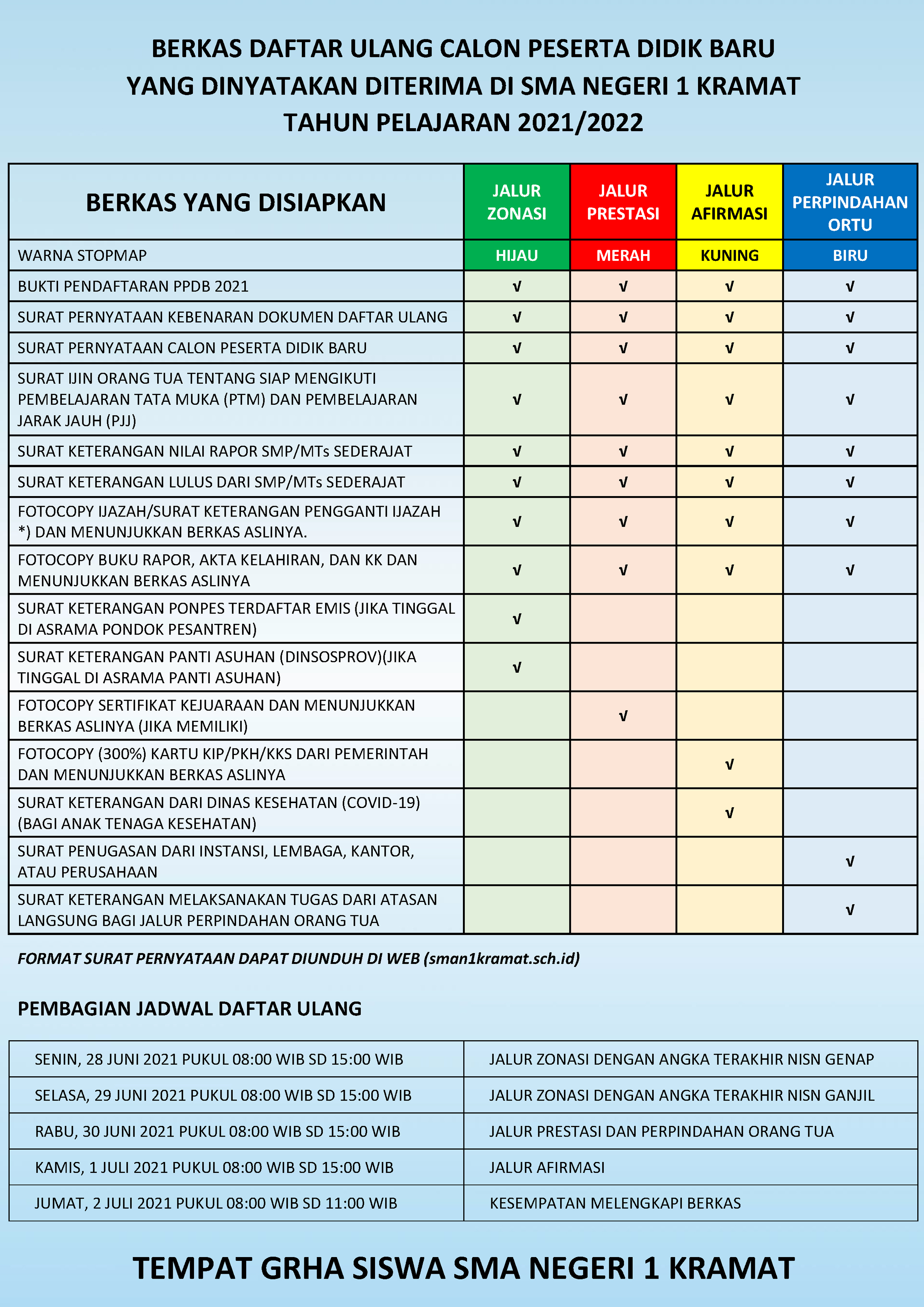 DAFTAR ULANG CALON PESERTA DIDIK KELAS X (SEPULUH) PPDB SMA NEGERI 1 KRAMAT TAHUN PELAJARAN 2022/2023